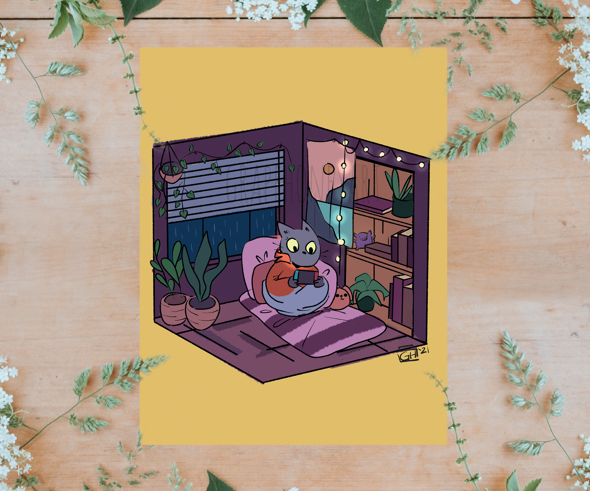 "Raining Outside" 8.5x11in. Digital painting print by Grapehoney