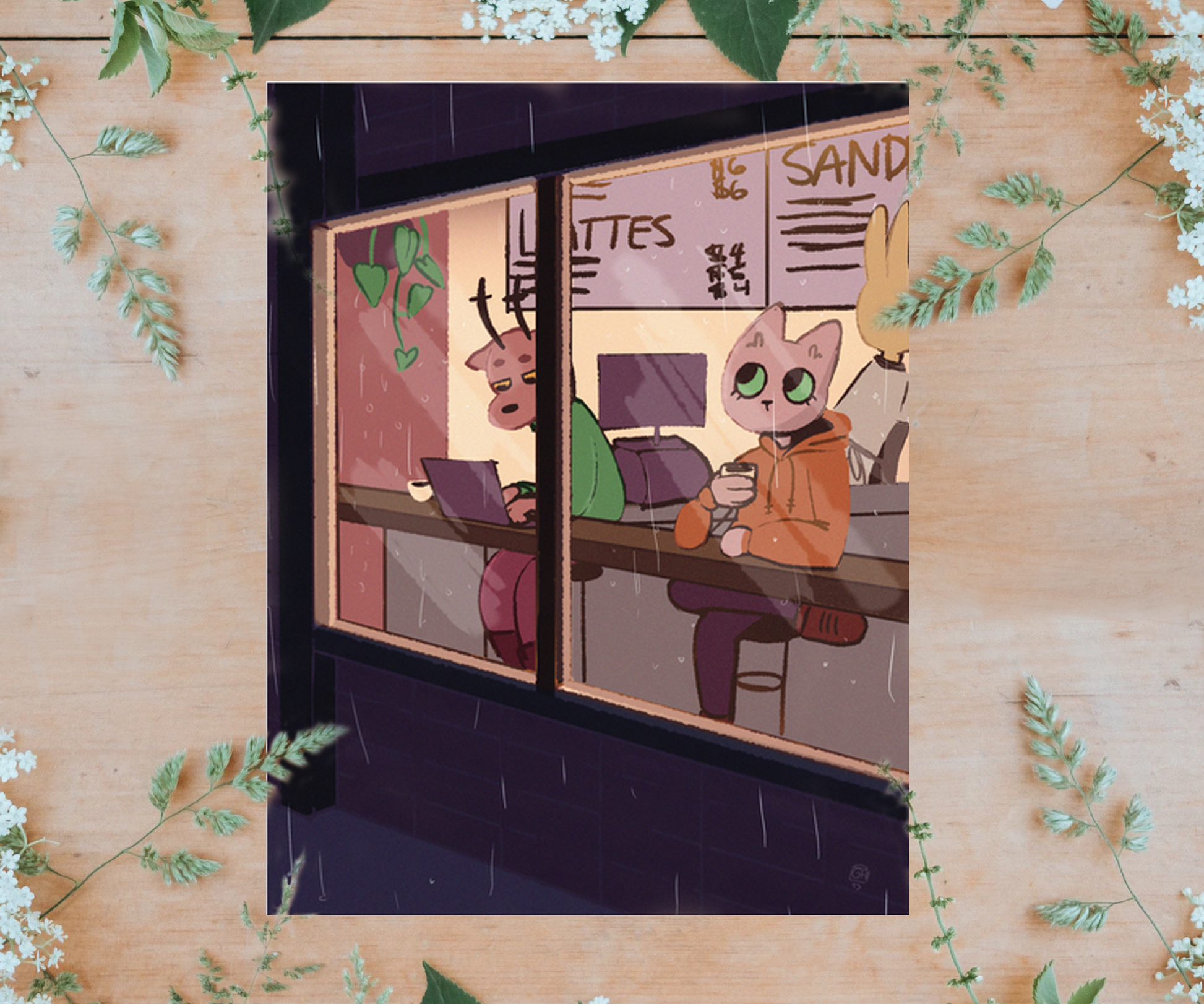 "Cozy Cafe" 8.5x11in. Digital painting print by Grapehoney