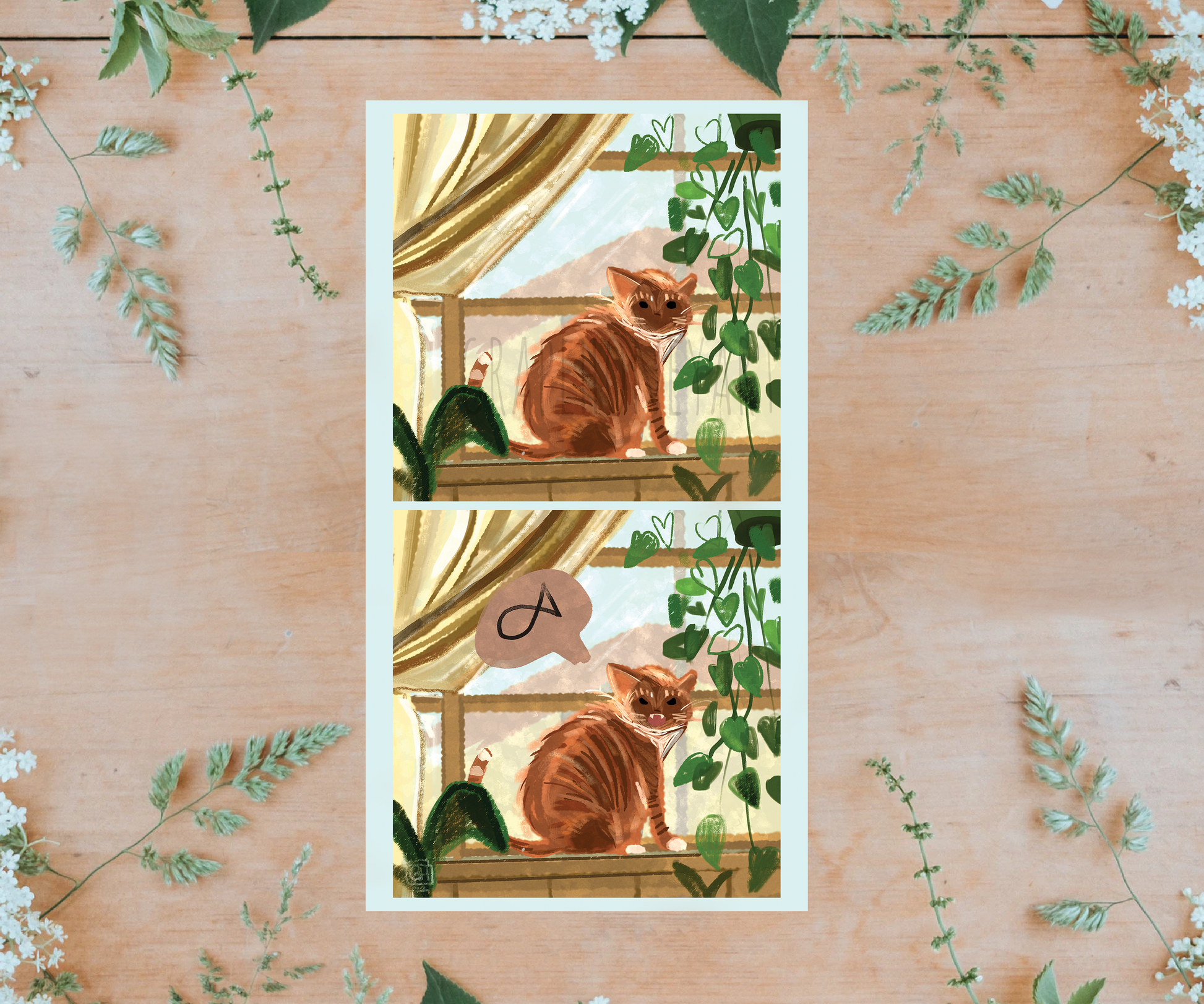"Hungry Kitty" 6x11in. Digital painting print by Grapehoney