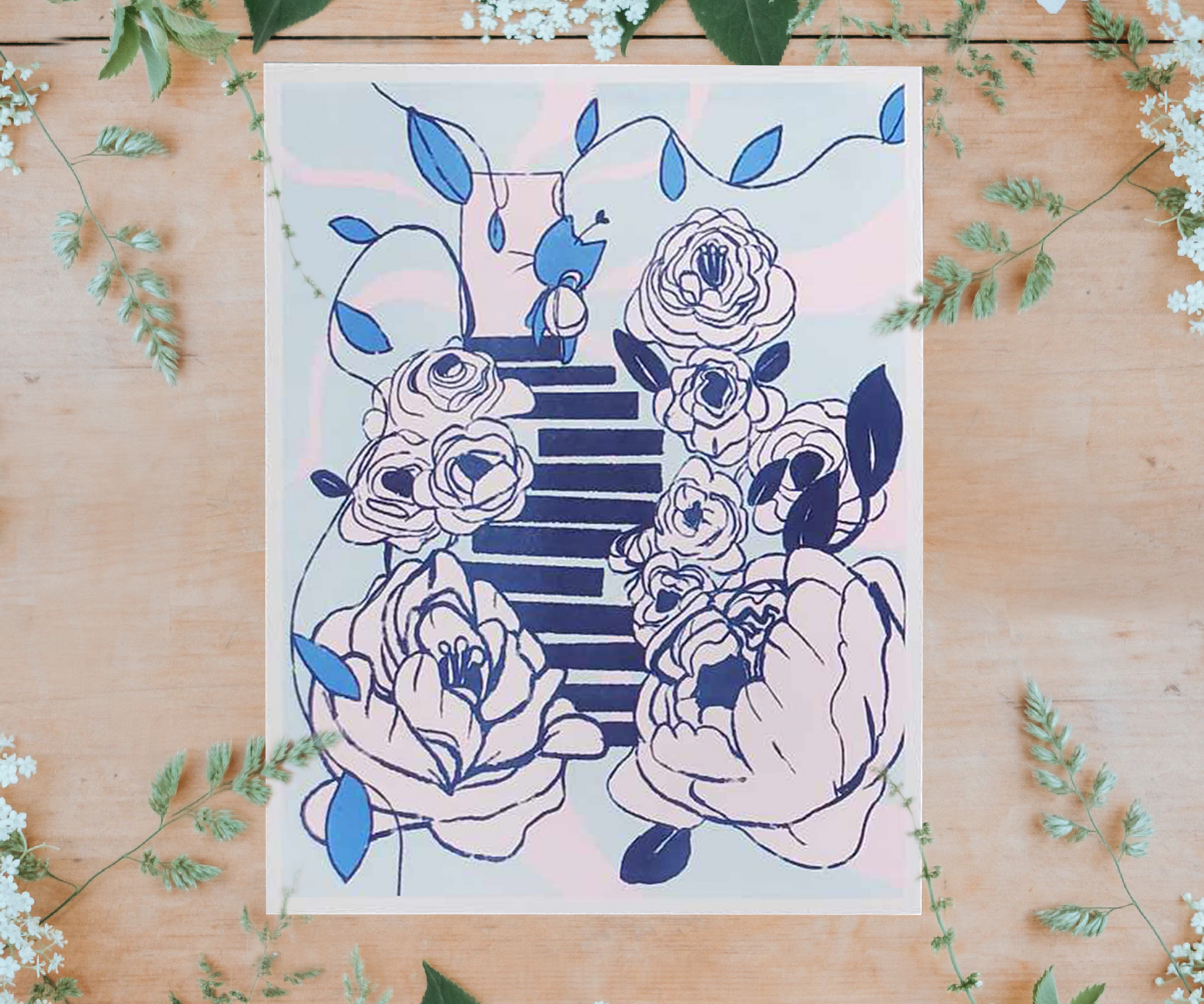 "Peony Stairs" 8.5x11 Riso Print