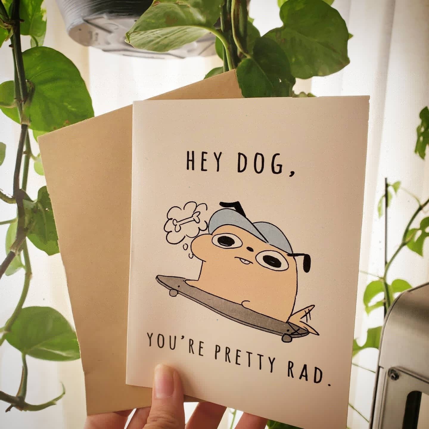 Rad Dog A2 Greeting Card "Hey Dog, I think you're pretty rad"