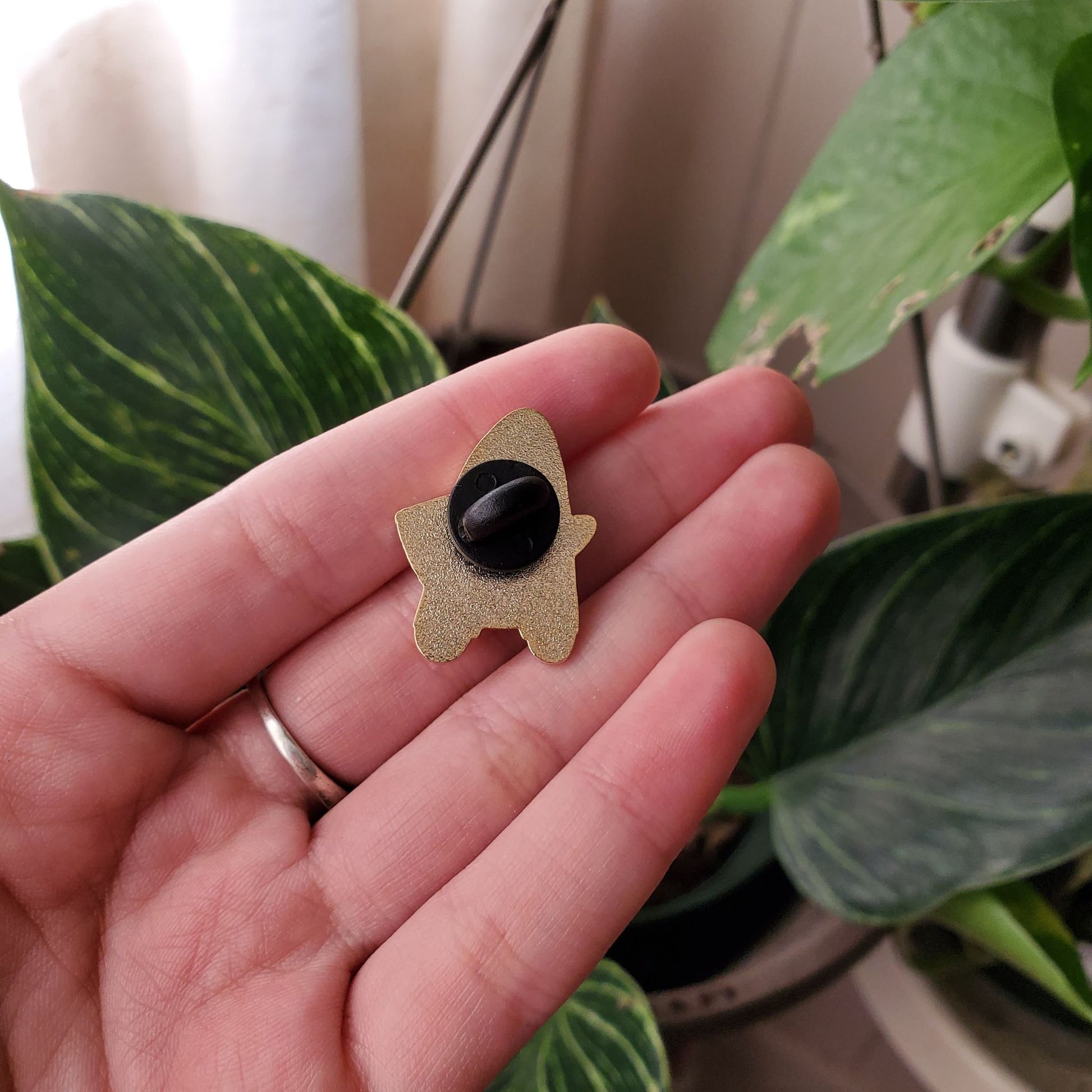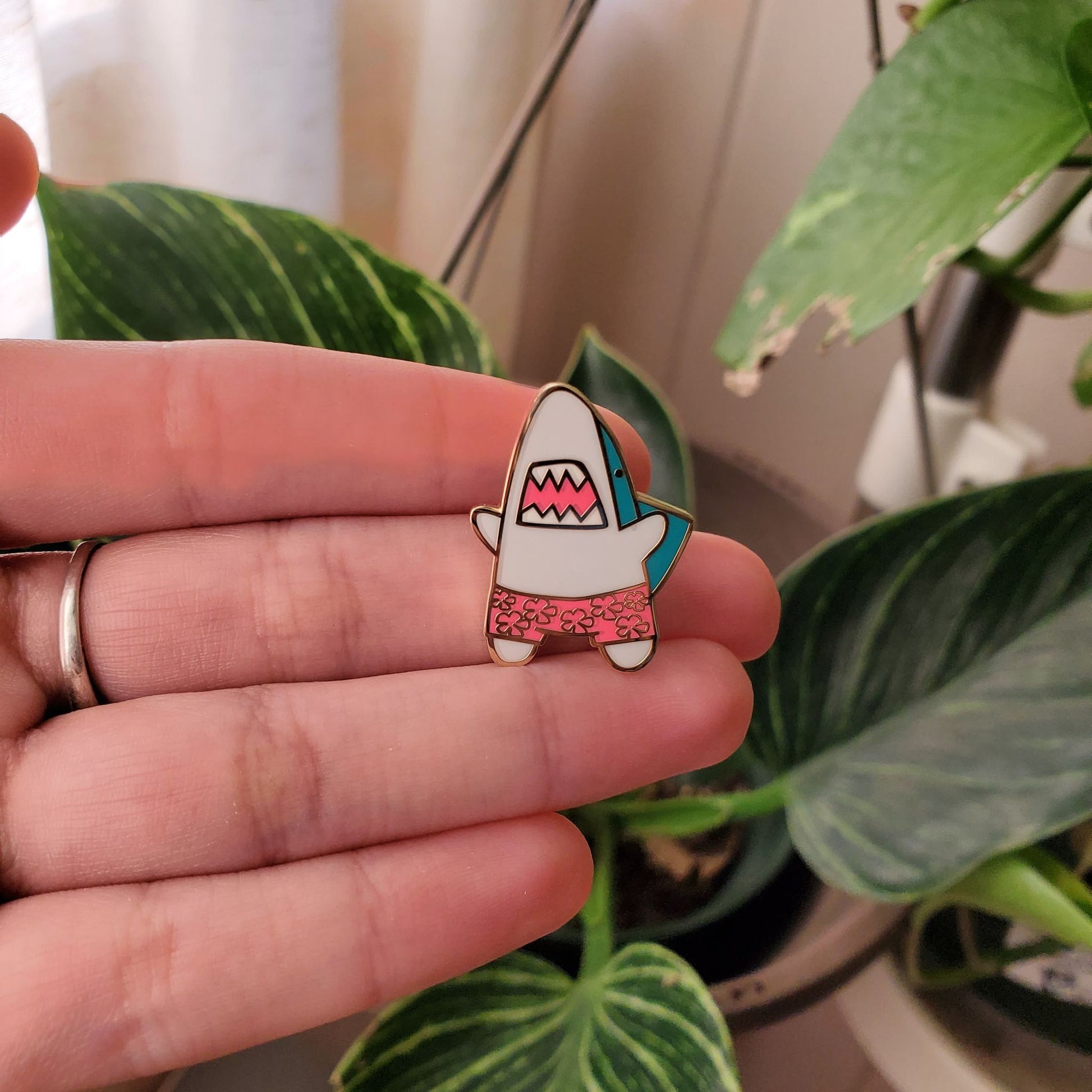 1 inch "Shork the Shark" Gold Hard Enamel Pin with black rubber backing.